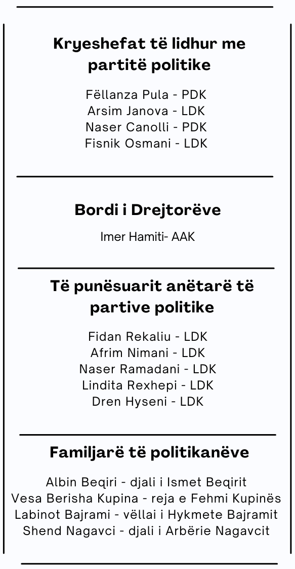 Në ndërmarrje ka gjetur vend vëllai i deputetes së LDK-së Hikmete Bajramit. Labinot Bajrami është punësuar si vozitës në këtë ndërmarrje.